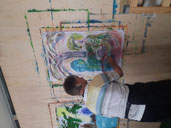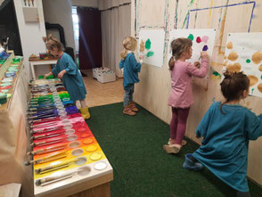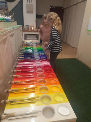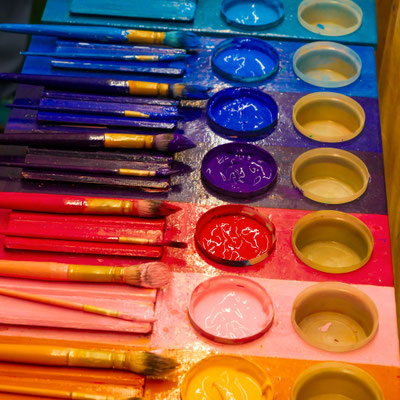 Kinder erlernen den Umgang mit den Pinseln und Farben und das sorgfältige Ordnen ihres so wichtigen Arbeitsmaterials.